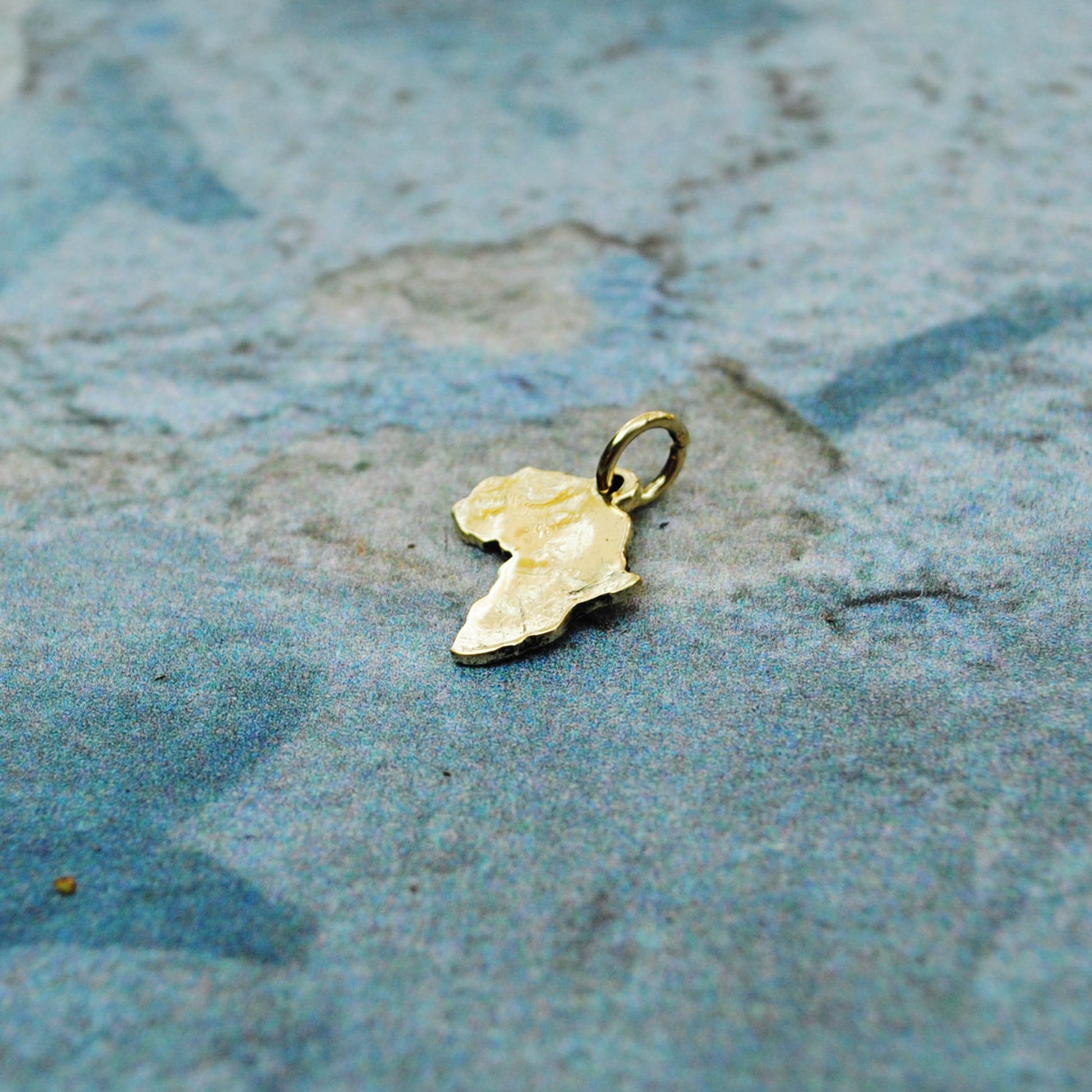 Our Africa Charm is available in brass, copper or sterling silver. They are available in a variety of finishes: Hammered, Smooth, Dotty, Scratch or Rough Rock.