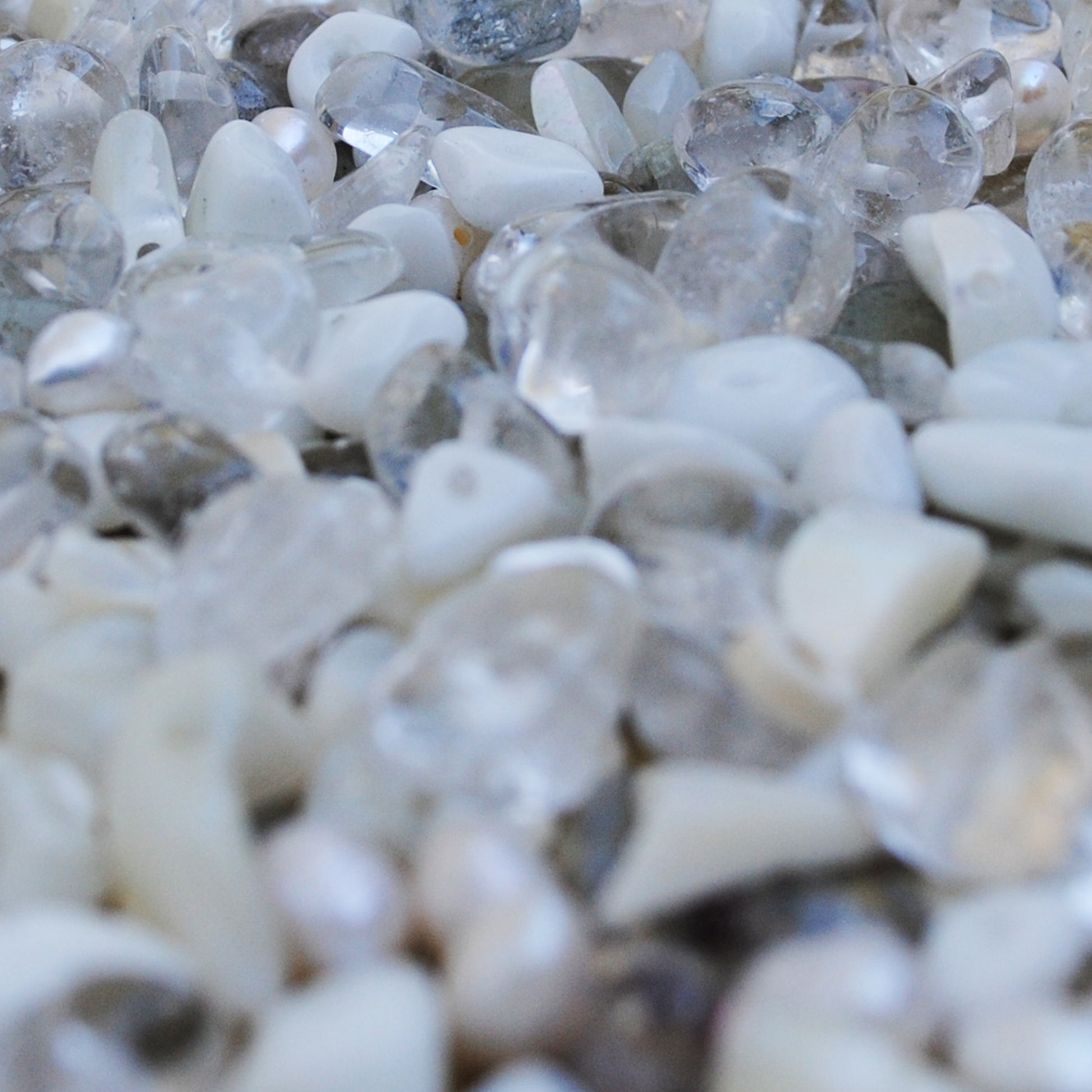 MALDIVES - A mix of white coloured beads. Fresh Water Pearls, Clear Quartz, Rutilated Quartz, White Quartz, Labrodorite, Shell Chips and Glass Beads.