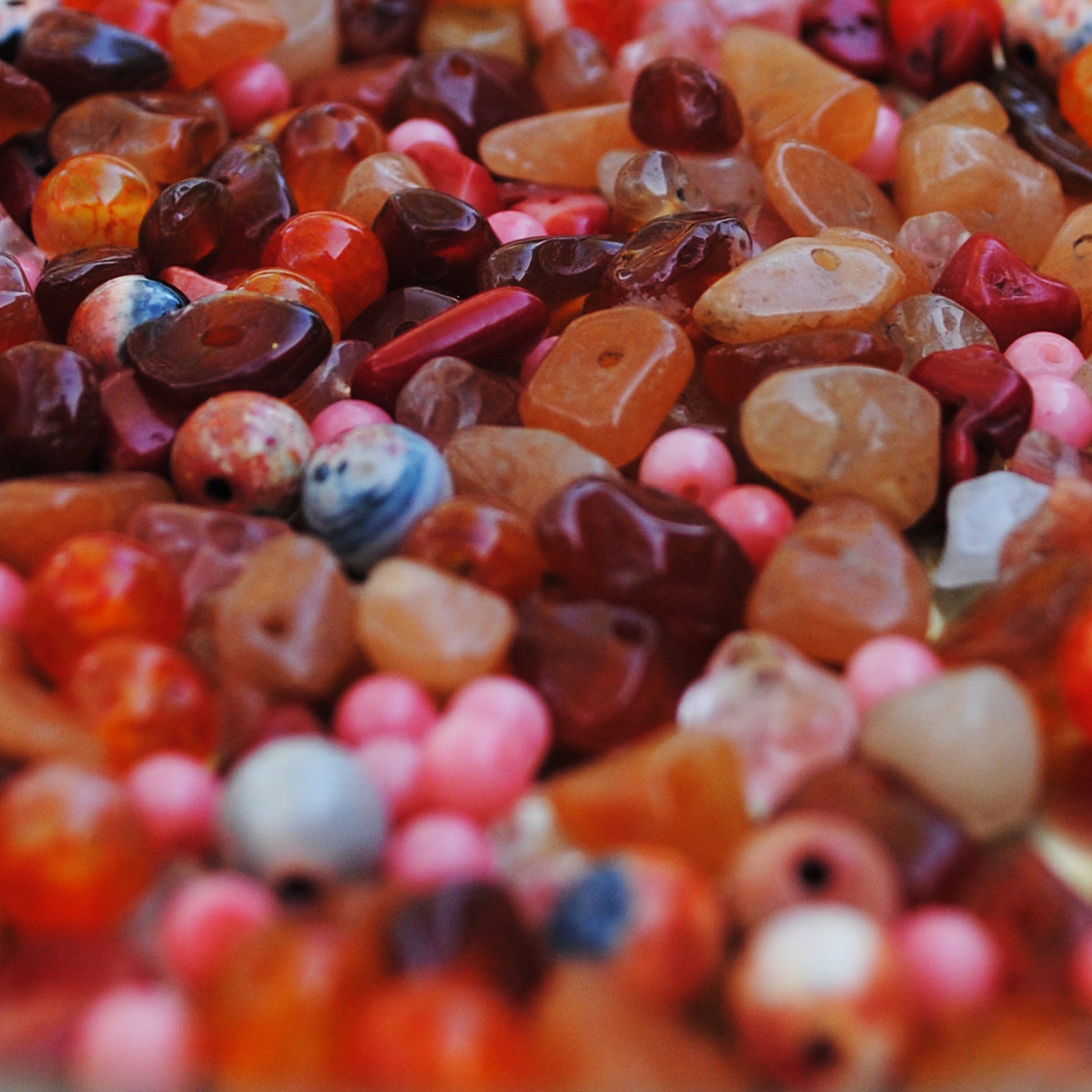 MALTA - A mix of orange coloured beads. Carnelian, Quartz, Coral Coloured Beads, Strawberry Quartz, Agagte and Glass Beads.
