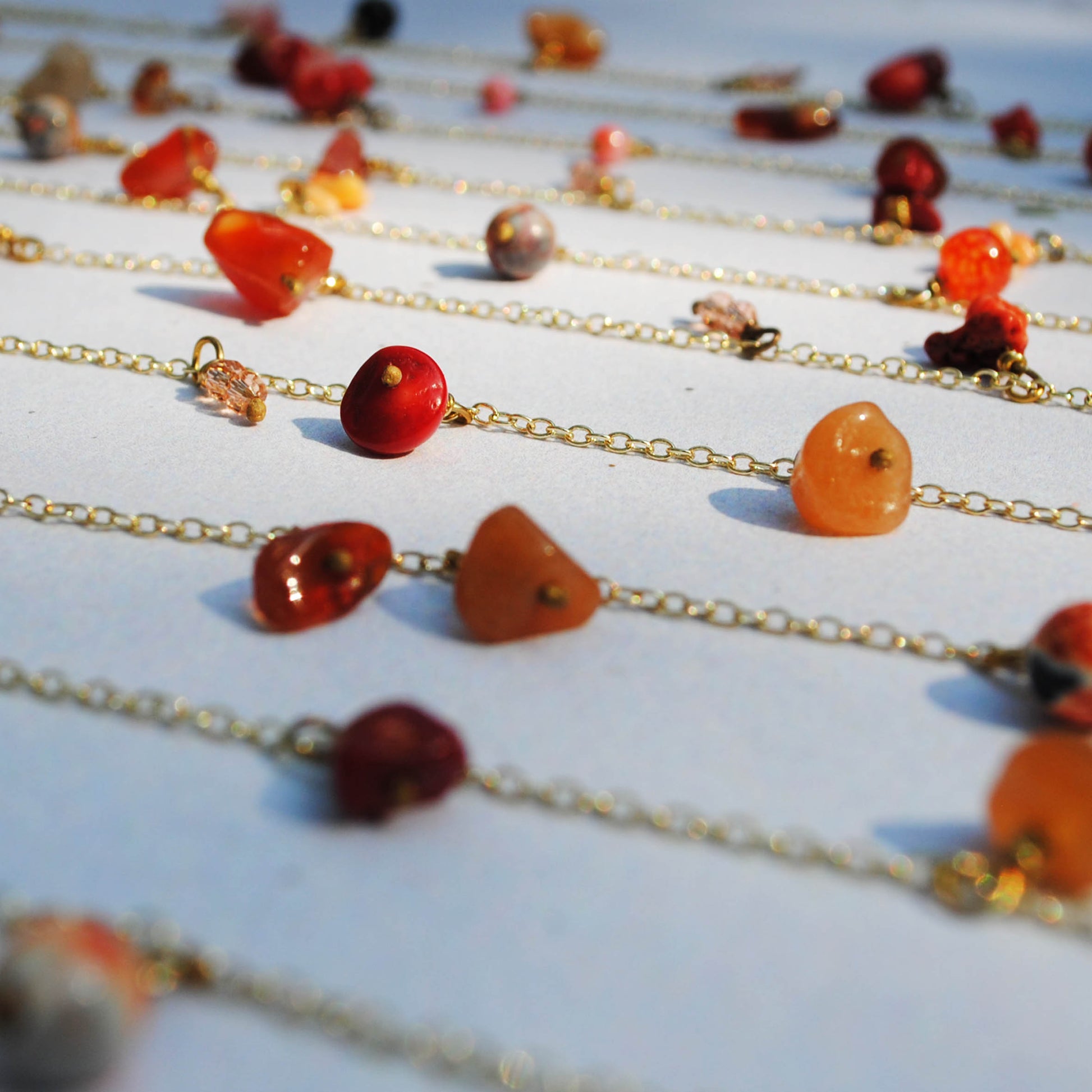 Our BUBBLE TIP Necklace is available with different beading options and chains.