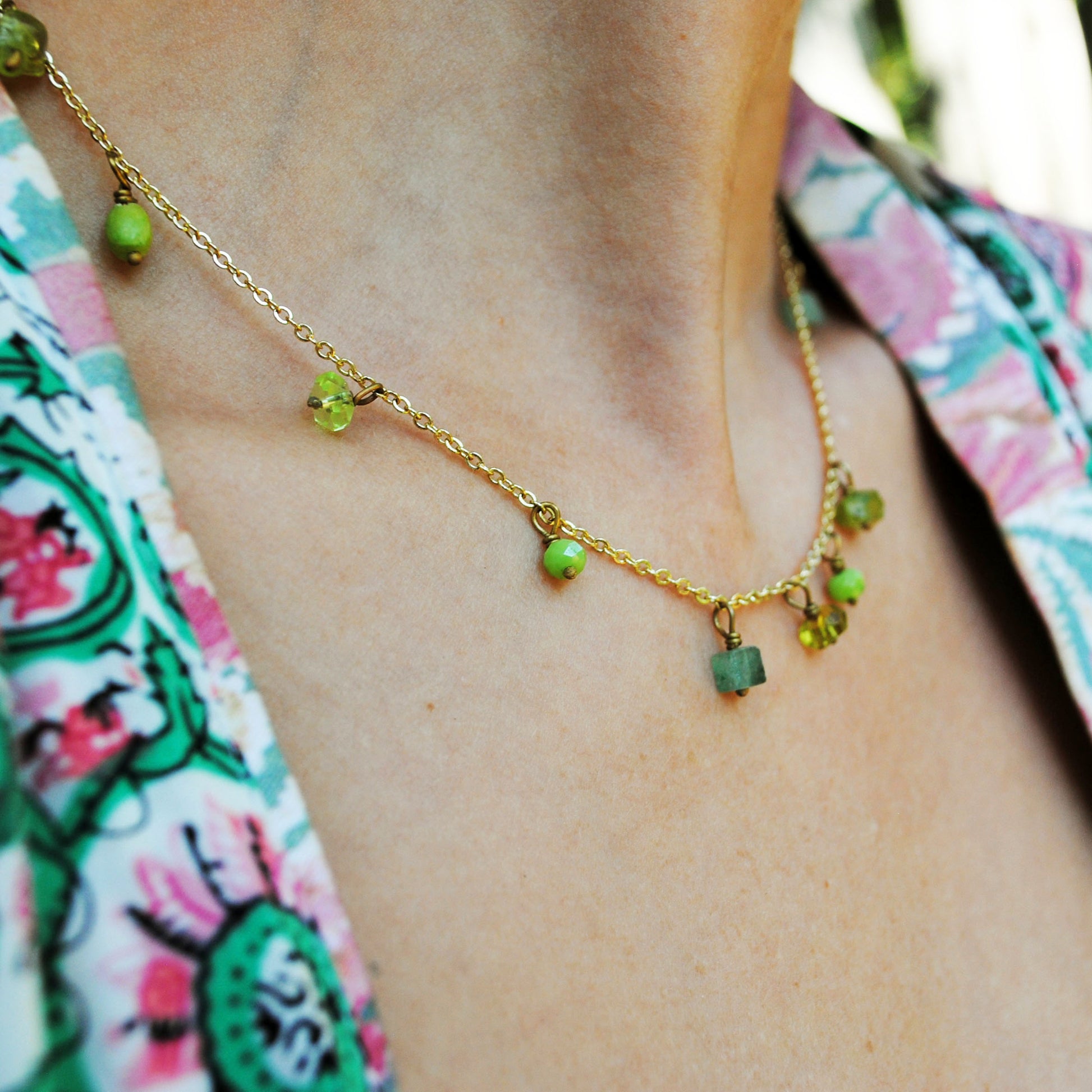 CORFU - A mix of green coloured beads. Peridot, Jade, Aventurine and Glass Beads.
