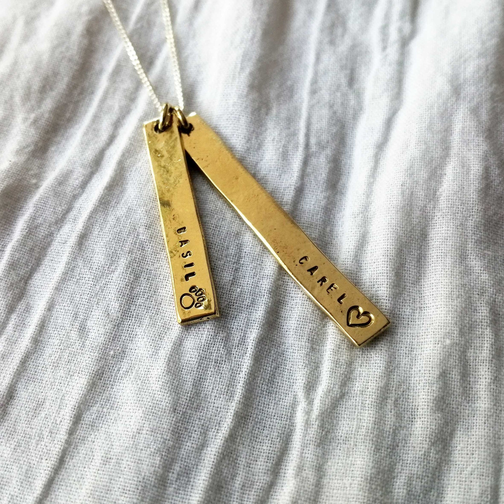 Our Double Punch Bar Necklace is available in Brass, Copper & Silver