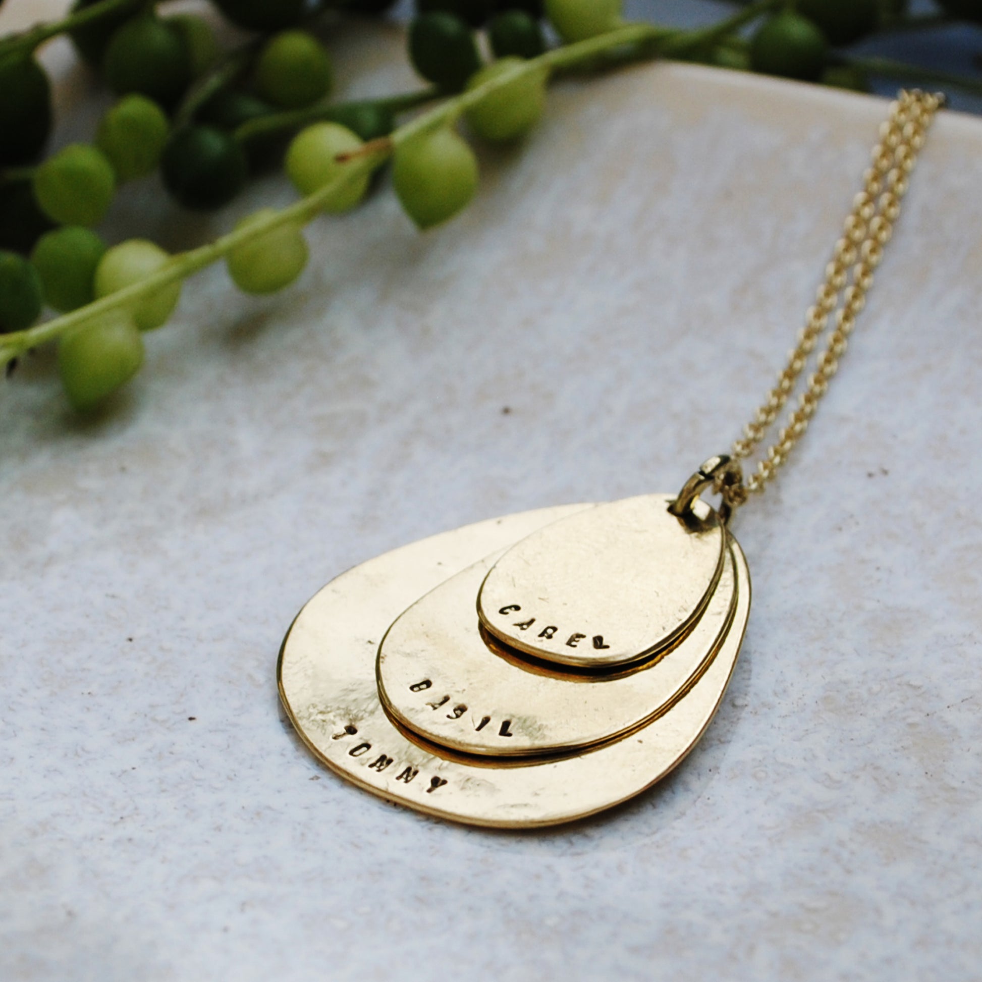 Our Double Punch Nugget Necklaces are available in brass, copper and sterling silver.