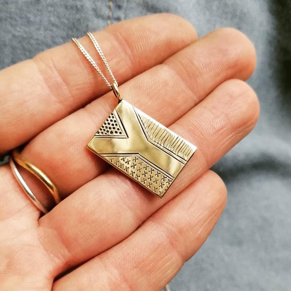 Our Fly the Flag Necklace is available in Brass, Copper or Silver.
