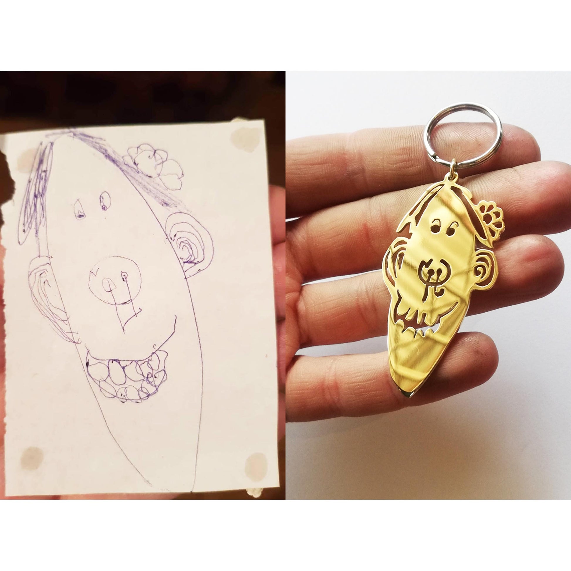 Our Kiddies Art Keychain is available in brass, copper or silver.