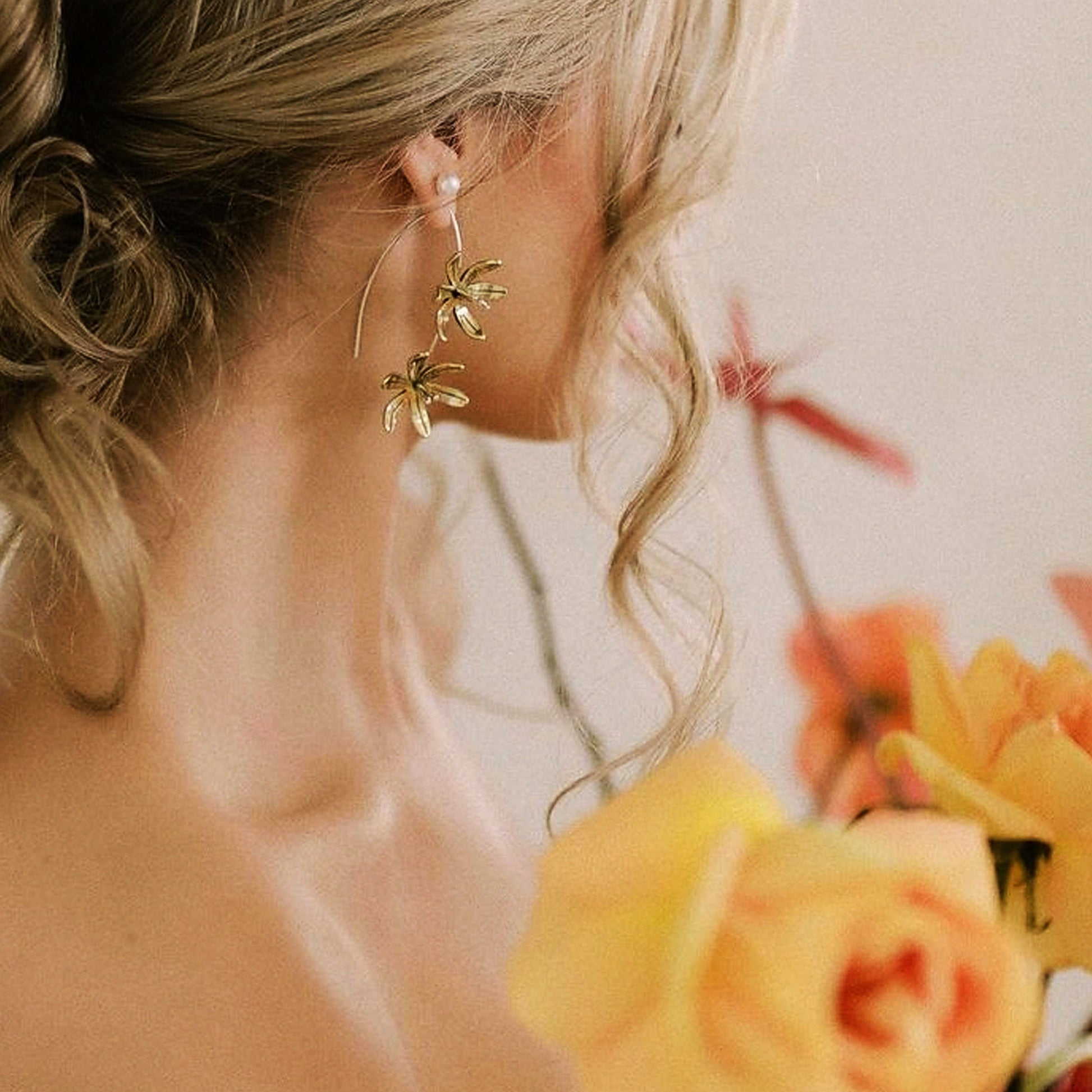 Our Lily Double Drop Earrings are available in Brass or Silver.