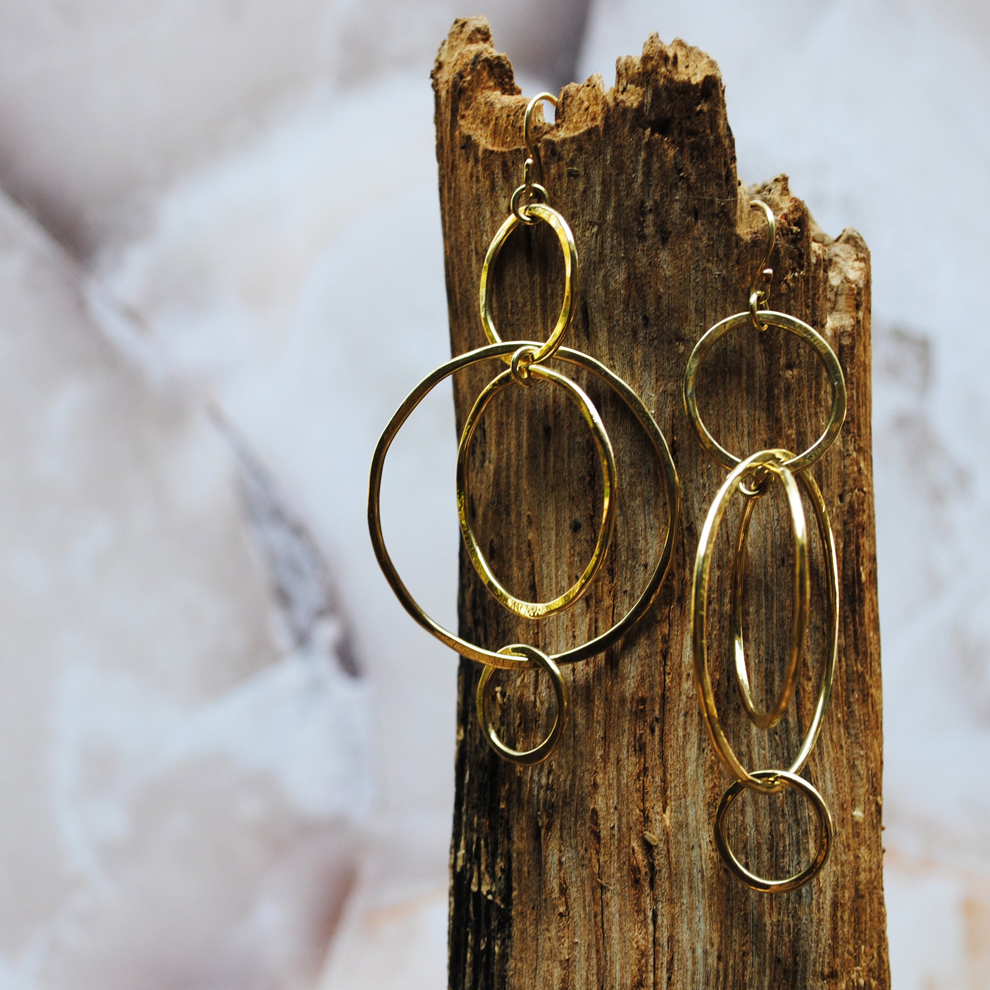 Our Spume Earrings are made up with hammered brass discs and have a sterling silver earing hook.