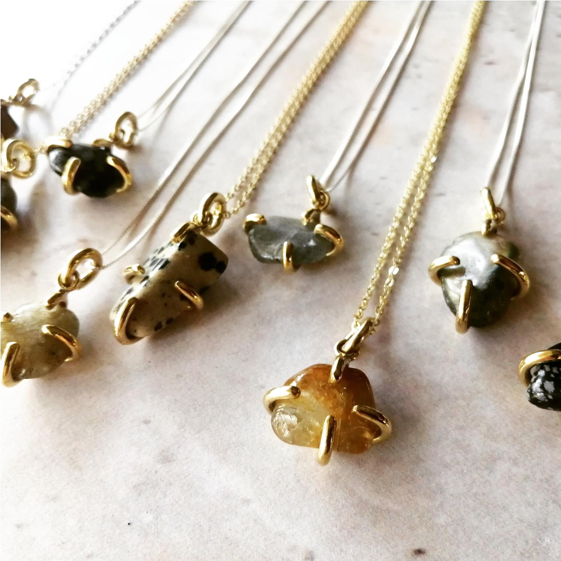 Our Stone Claw Necklace is available in brass or sterling silver, set in your choice of stone.