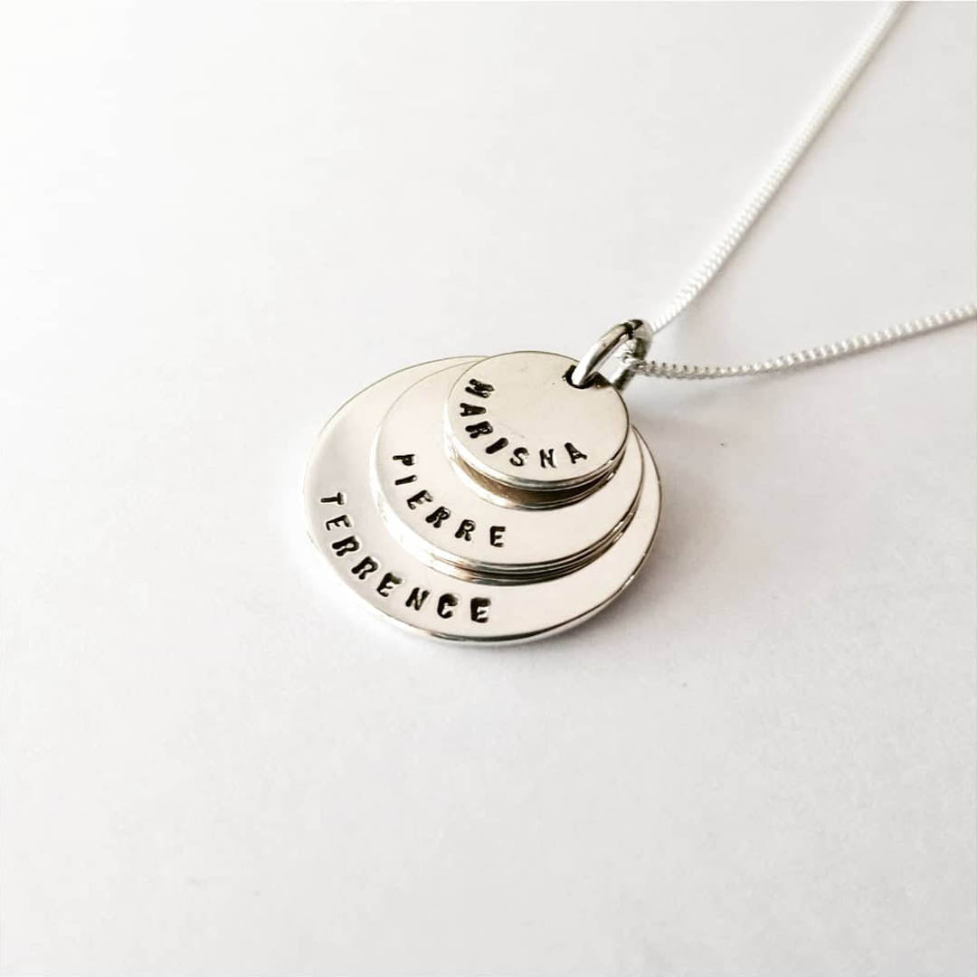 Our Triple Punch Disc Necklace is available in Brass, Copper or Silver.