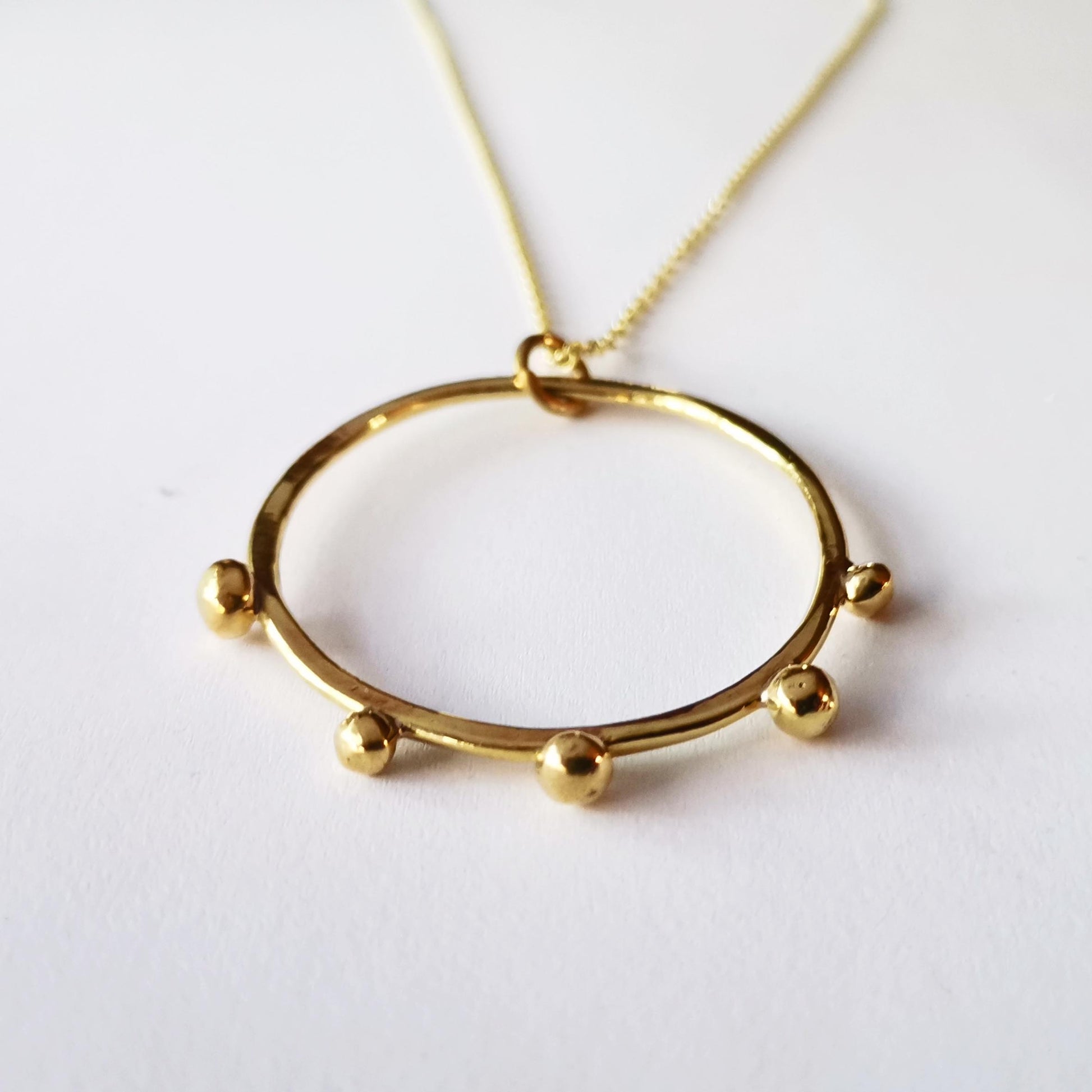 Our Urchin Necklace are available in Brass or Silver with hoop size Medium or Large.